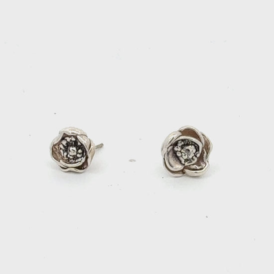 A pair of beautiful silver rose earrings inspired by nature. Each petal has been individually hand crafted then joined to make unique silver roses. The approximate dimension of each earring is 1cm width and 1cm length.